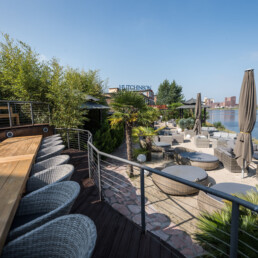 Eines der absoluten Highlights unserer Hochzeitslocation ist der traumhafte Stadtstrand direkt am Wasser. Hier wird eure Hochzeit zum unvergesslichen Erlebnis – mit den Füßen im Sand, einem Glas Wein in der Hand und dem Sonnenuntergang im Blick.
